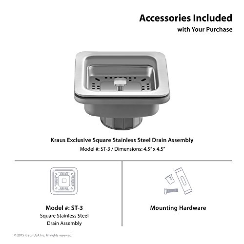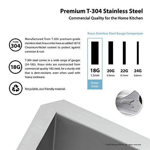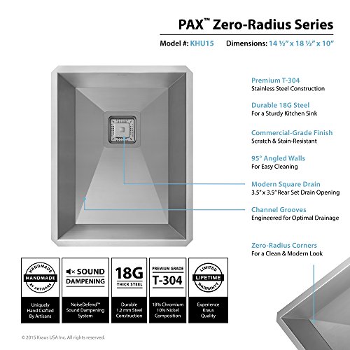Kraus KHU15 Pax Zero-Radius 14 1/2" 18 Gauge Handmade Undermount Single Bowl Stainless Steel Bar/Prep Sink