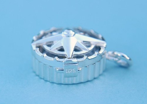 This Stanley London miniature compass in a handsome sterling silver locket is the perfect gift. It features a highly polished compass rose on its hinged lid, which opens to reveal a 5/8 inch (16 mm) diameter working compass. This fine compass locket weighs 0.26 ounces (7.5 grams), measures approximately 3/4 inch (18.54 mm) in diameter and approximately 3/8 inch (9.39 mm) thick. It is stamped "925" to designate the quality sterling silver content (92.5% pure silver). This locket and chain come in a high quality hinged gift box. Our Sterling Silver Compass Rose Locket is also offered with a 17.5 inch sterling silver chain.Feature