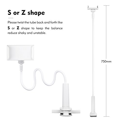 2. Q: How stable when using it to hold an iphone7 Plus? A: The long arm is very stable, even a little hard to bend, but can be adjusted. You need to bend the arm to "S" or "Z "or "3" shape to create multiple standing points, avoid holder shaking or falling down!