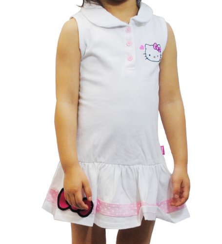 The Hello Kitty Girls Sleeveless Tennis/Golf Dress combines simple design with fun details White accents and a ruffled skirt component make this the perfect piece for any little tennis player Color Pink White Fabric 100 Cotton