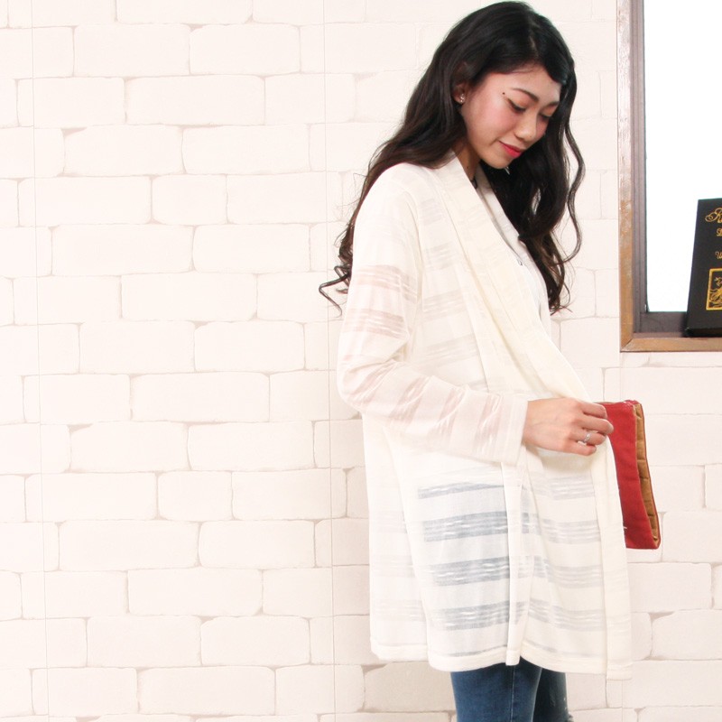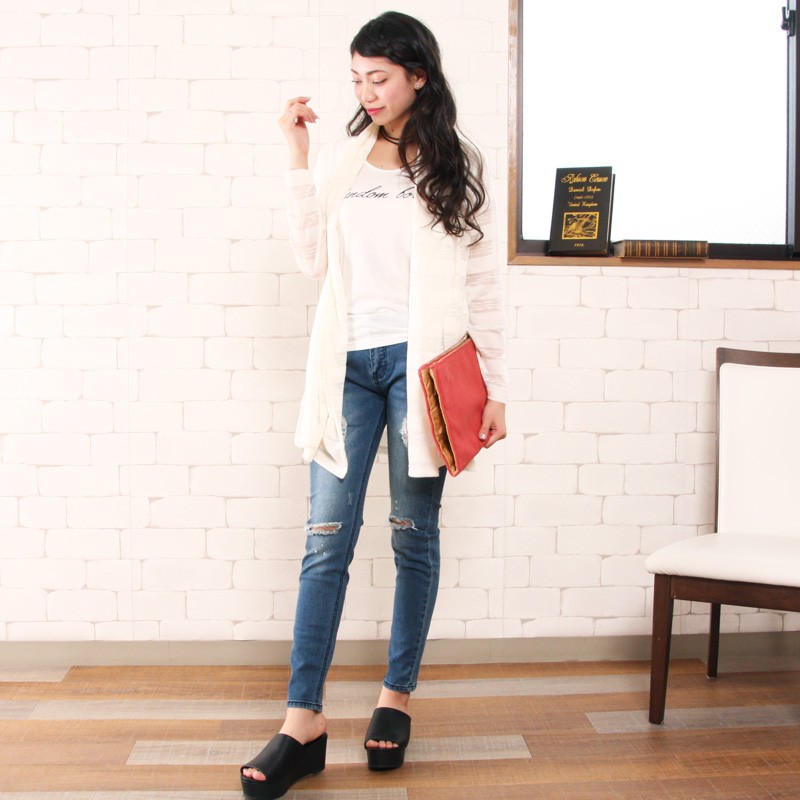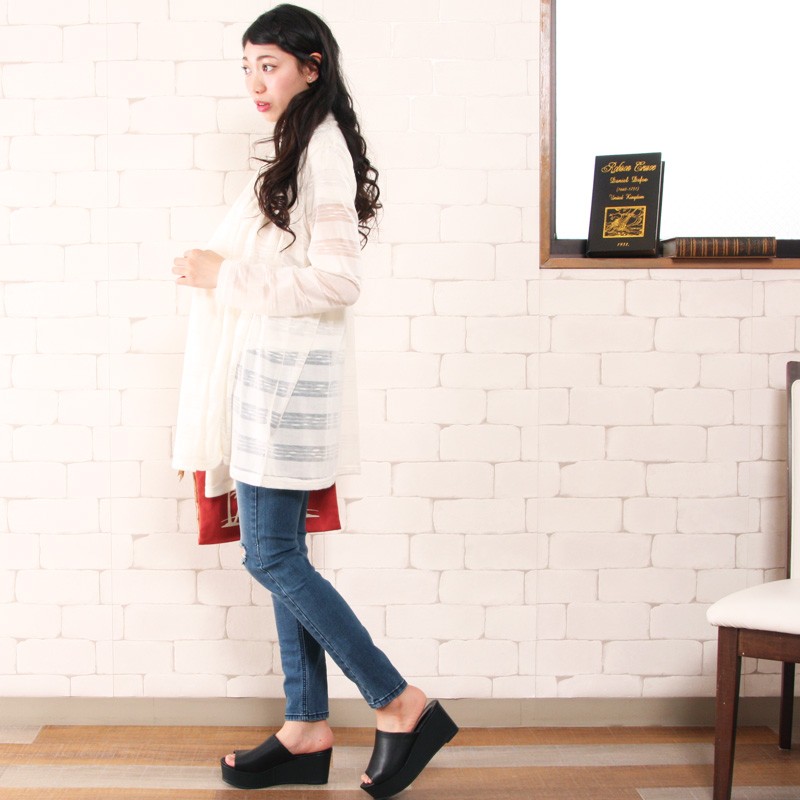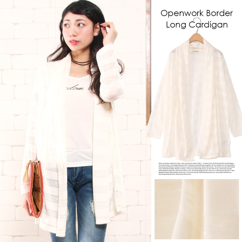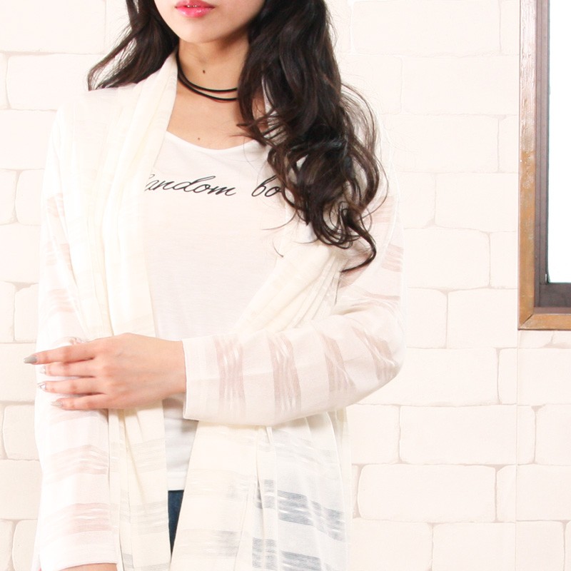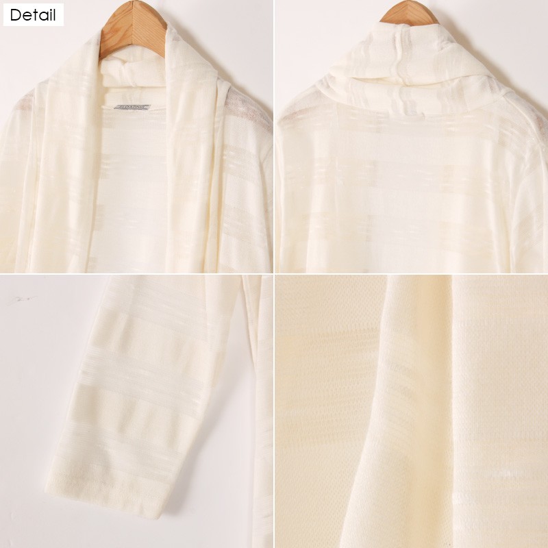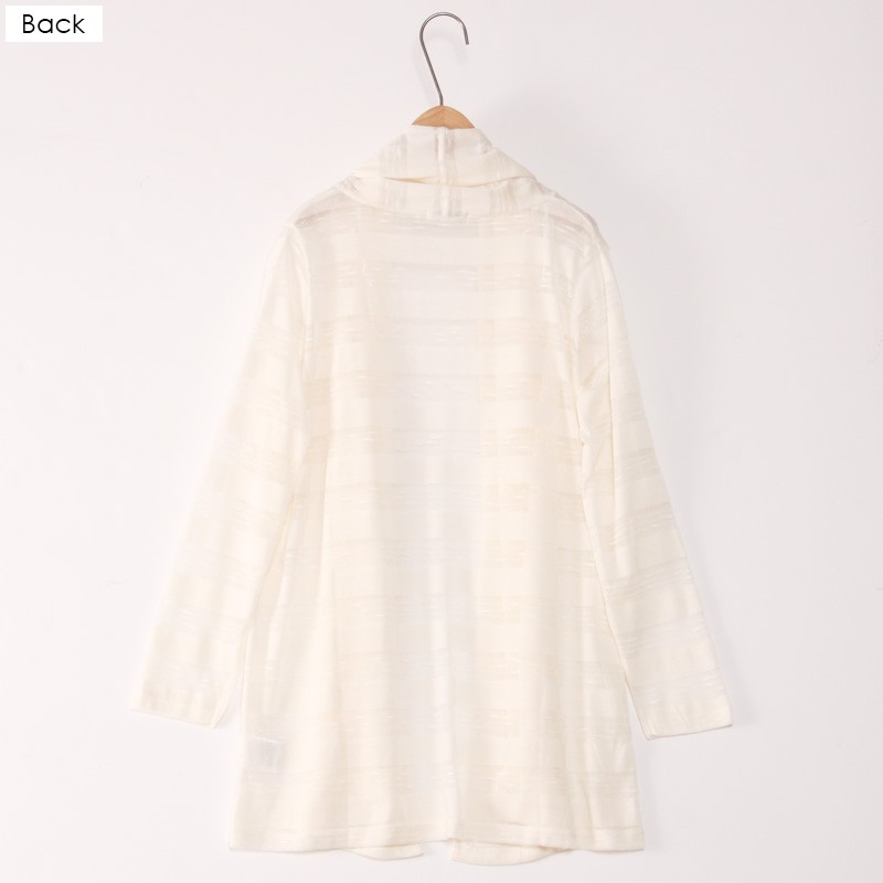【Lサイズ】 着丈:約77cm 肩幅:約40cm 袖丈:約62cm 身幅:約62cm ※すべて平置きサイズです。 | | 素材 | ポリエステル100% | | 生産国 | 中国 | | 裏地 | なし | | 生地の伸縮 | あり | | 生地の透け感 | あり | | カラー | 01. アイボリー | | 注意点 | ▼綿混合商品は洗濯時に多少縮む事がございます。 ▼パソコン、モニター等の環境により、実際の商品素材カラーが多少異なる場合が御座います。予めご了承ください。 ▼お手数ですが必ずお買い物ガイドを一読頂いてからご利用いただきますようお願い申し上げます。 | |