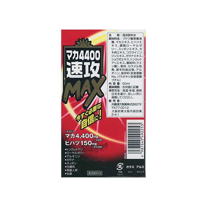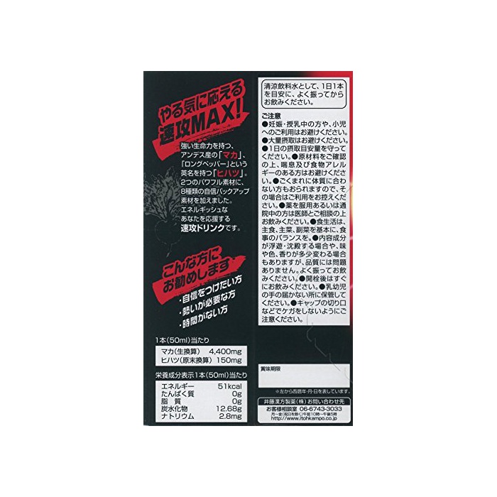 원본상품명: 井藤漢方製? マカ 4400 速攻マックス 1日分 50ml(MAX スタミナ パワフルドリンク)