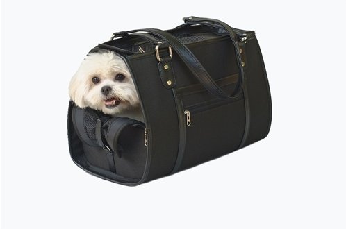 -. Feature : Stylish, unisex style dog carrier; great for men and women / Made of soft durable fabric and trimmed with animal friendly faux leather, 2 zipper pockets for storage, removable washable faux fur bedding / Fits dogs up to 15 pounds; zip top entry / Vented on top and both ends; one end features roll-down window for your dog to stick it's head out / 16-inch long, 11-1/2-inch high, 8-1/2-inch wide