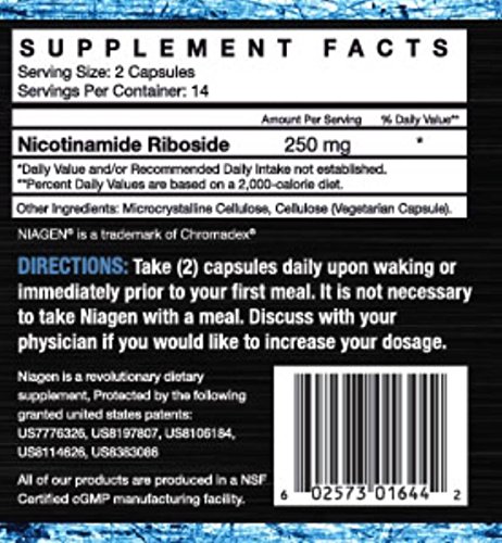 -. Binding : Health and Beauty -. Brand : NIAGEN -. EAN : 0602573016442 -. Feature : BELIEVER BOTTLE by HIGH PERFORMANCE NUTRITION . A cost effective way to try Niagen / NIAGEN Increases the NAD+ coenzyme for enhanced mitochondrial function to Promote Healthy Cellular Metabolism / NIAGEN is a Patented Longevity Booster Proven To Increase NAD+ / NIAGEN Increases NAD+ in the cerebral cortex which supports cellular health in the brain, improves cognitive function, and protects against axonal degeneration associated with aging -. IsAdultProduct : 0 -. Label : High Performance Nutrition -. Manufacturer : High Performance Nutrition -. MPN : NBB -. PackageQuantity : 1 -. PartNumber : NBB -. ProductGroup : Health and Beauty -. ProductTypeName : HEALTH_PERSONAL_CARE -. Publisher : High Performance Nutrition -. Studio : High Performance Nutrition -. Title : NIAGEN N(R) Believer Bottle - 28 Capsules -. UPC : 602573016442
