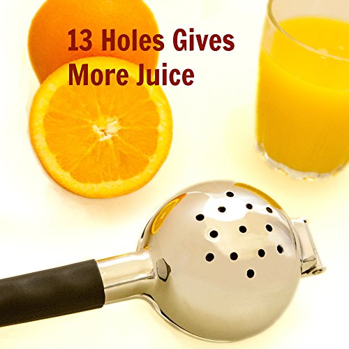 BIGGER THAN THE REST: Our extra wide bowl is larger than most other manual juicers on Amazon. Big enough for most oranges, large lemons and limes. The 13 hole design gives you more juice compared to other squeezers with only 7 holes.