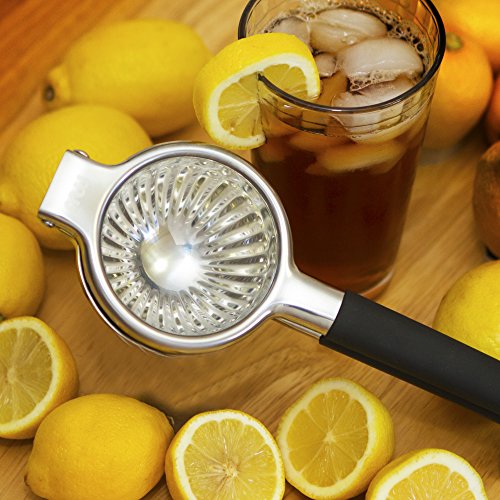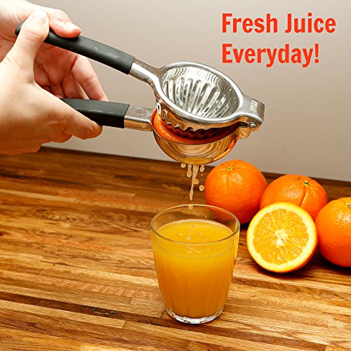 SQUEEZING IS EASY: The ergonomically designed silicone handle gives you a comfortable grip. Made with 304 Stainless Steel our Orange & Lemon Juicer is one of the biggest and strongest on the market. Large lemons from Costco, no problem. Squeeze as hard as you need and get more juice out of every fruit.