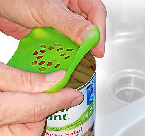 Easily strain and drain cans, bottles & small containers