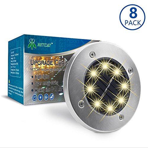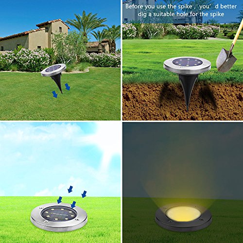 Solar Ground Lights,Garden Pathway Outdoor In-Ground Lights With 8 LED (Warm White)