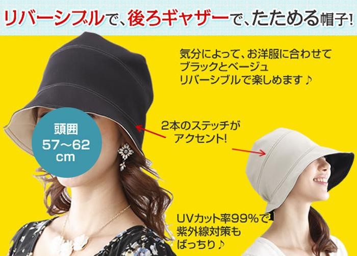 吸汗速乾素材を使った帽子です。リバーシブルタイプで折りたためるだけでなく、後ろギャザーで伸縮サイズですので、使用シーンや髪型に合わせてかぶれる便利な帽子です。