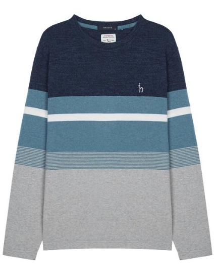 2018 F/W 네이비 컬러블록 면혼방 긴팔티셔츠