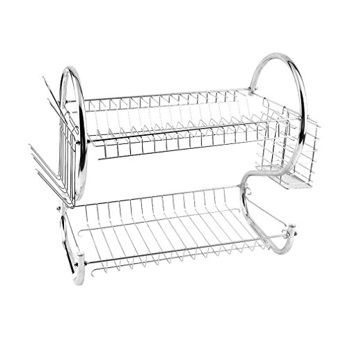 Deluxe Chrome-plated Steel 2-Tier Dish Rack with Drainer Rack Drip Tray Plates Holder / Cutlery Cup
