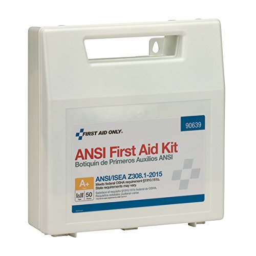 -. Binding : Misc. -. Brand : First Aid Only -. EAN : 0092265906395 -. Feature : Plastic, organized case comes with a carrying handle / Contents exceed the 2015 ANSI Class A requirements / Sufficient to treat 50 or more people -. Label : Pac-Kit -. Manufacturer : Pac-Kit -. Model : 90639 -. MPN : 90639 -. NumberOfItems : 1 -. PackageQuantity : 1 -. PartNumber : 90639 -. ProductGroup : BISS Basic -. ProductTypeName : SAFETY_SUPPLY -. Publisher : Pac-Kit -. Size : 50 Person -. Studio : Pac-Kit -. Title : First Aid Only 90639 ANSI 2015 Compliant 50 Person Bulk Class A+, First Aid Kit, Plastic Case with Dividers -. UPC : 092265906395
