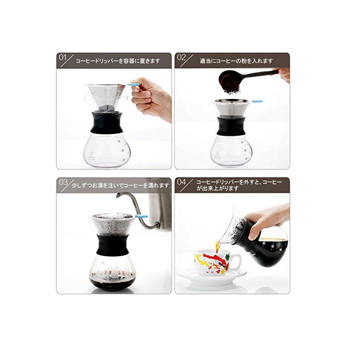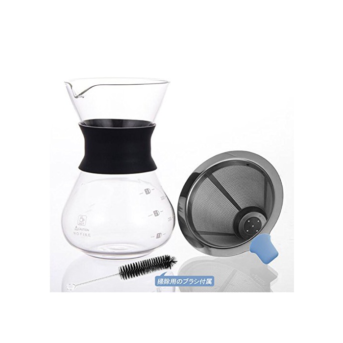 원본상품명:HomySnug コヒドリッパ ステンレスフィルタ コヒサバ 掃除用ブラシ付き 2層メッシュ 耐熱ガラス フィルタ不要 1~4杯用 400ML