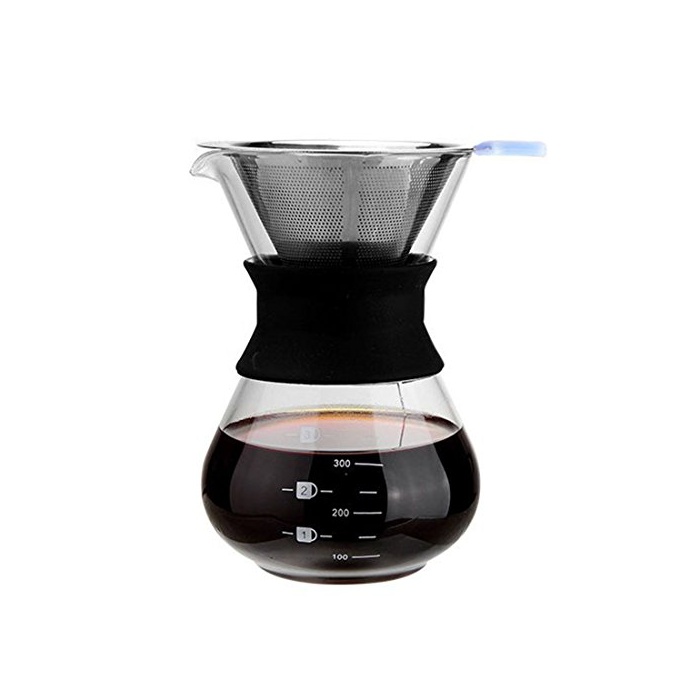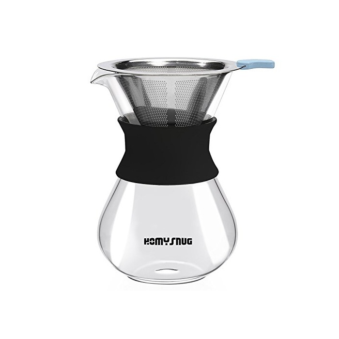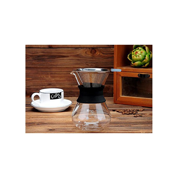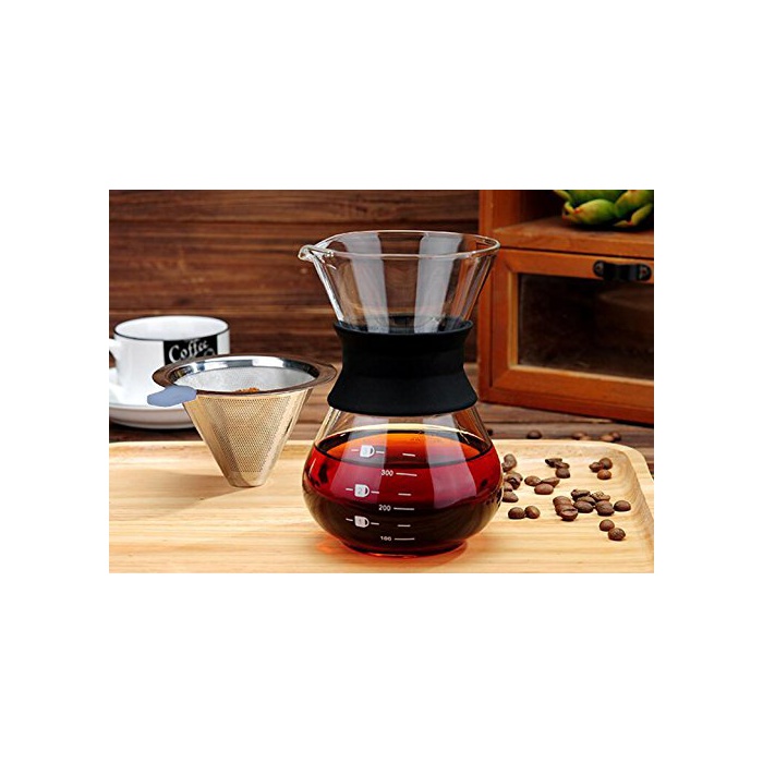 HomySnug 커피 드 re파 스테인레스 필터 커피 서버 청소용 브러시 부착 2 층메쉬 내열 유리 필터 불요 1~4 배용 400ML