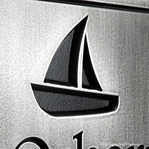 -. Title : Nautical Anchors Away Address Plaque with Sailboat 14x13 - Recessed Pewter Metal Coated