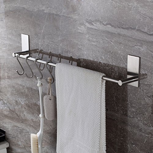 Mellewell Self Adhesive 21.8-Inch Towel Bar Holder Bathroom Organizer, Stainless Steel Brushed Nickel, 02003TB22