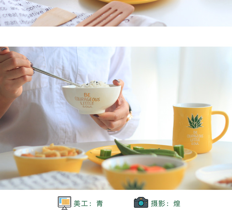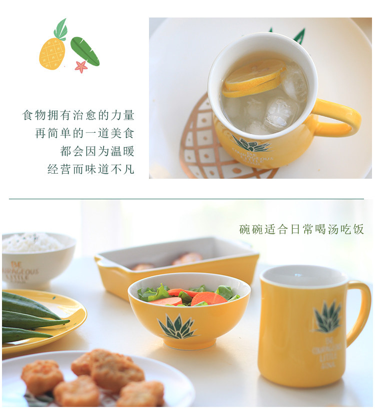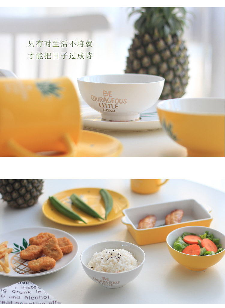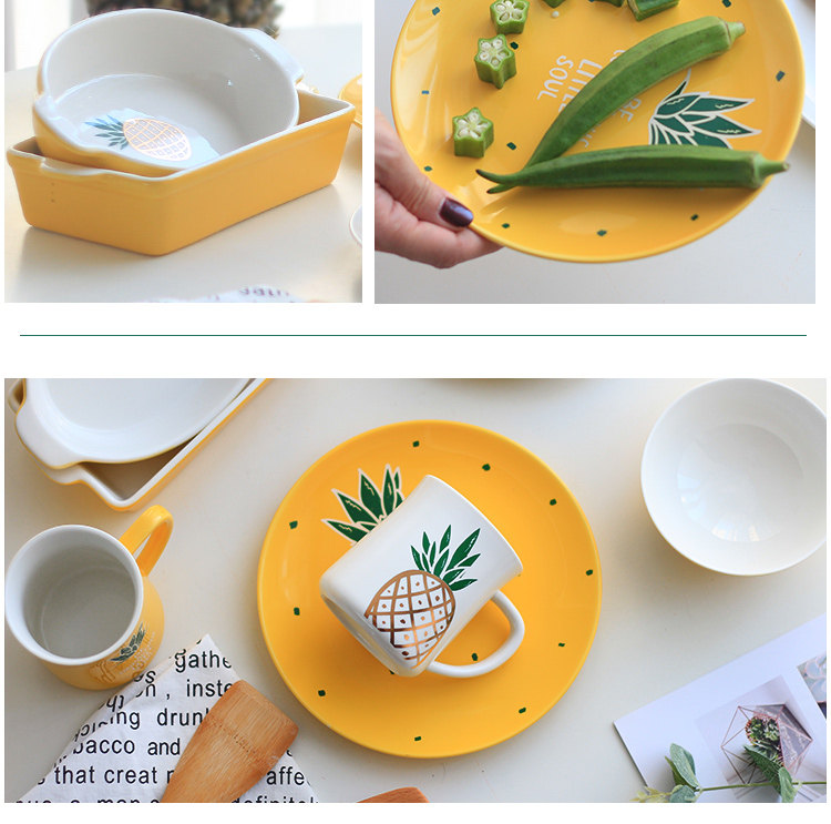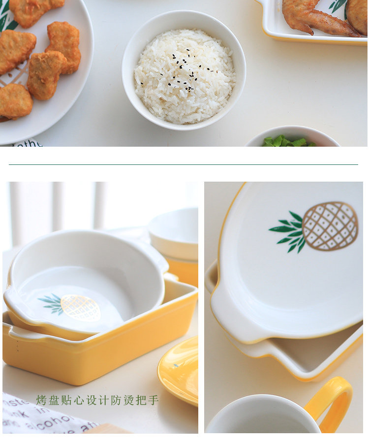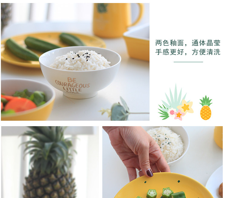 中式陶瓷菜盘早餐盘子米饭碗微波炉烤盘家用小清新菠萝餐具套装