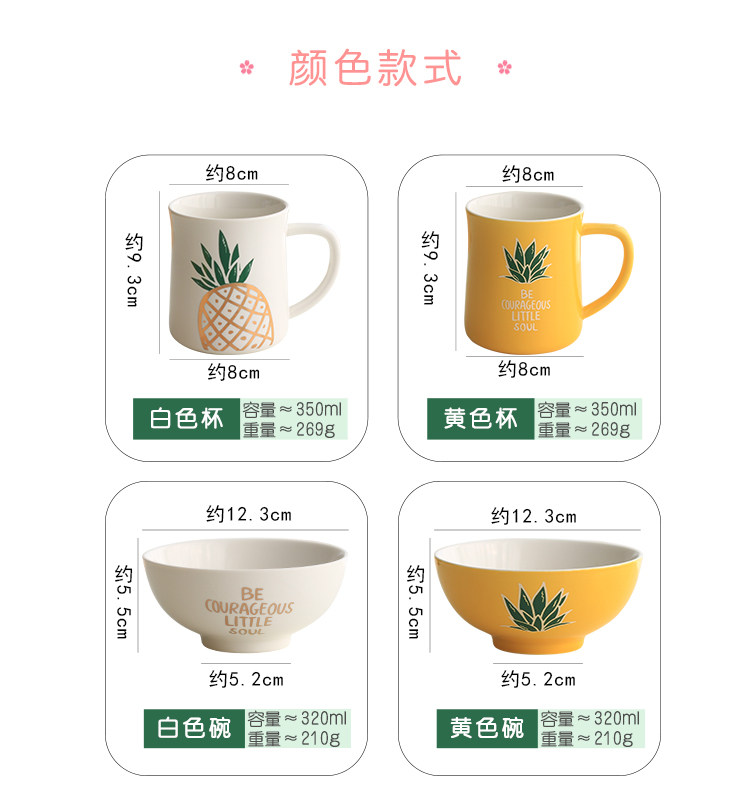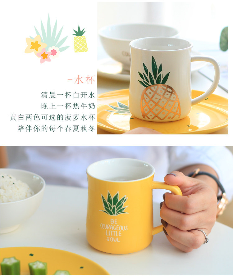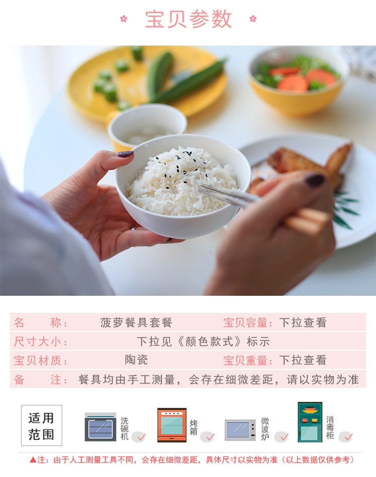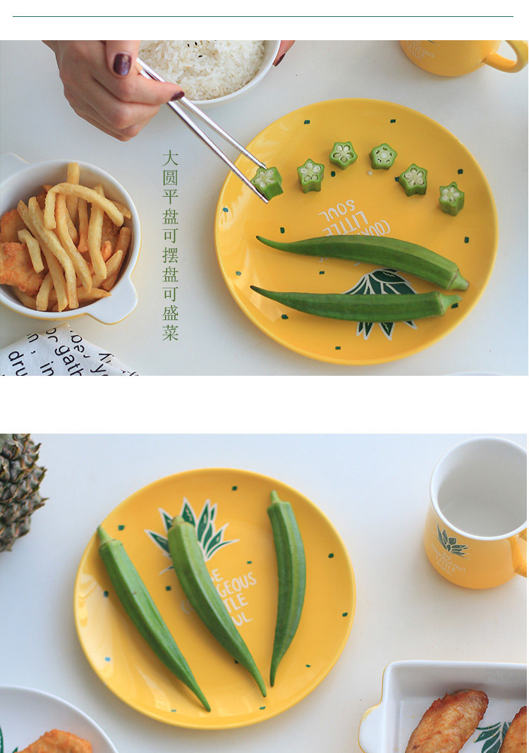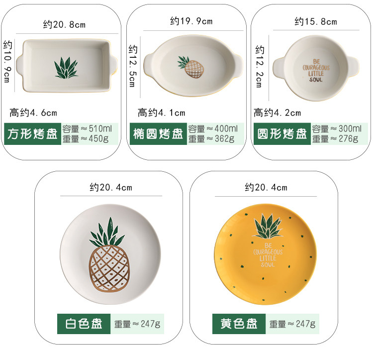 中式陶瓷菜盘早餐盘子米饭碗微波炉烤盘家用小清新菠萝餐具套装