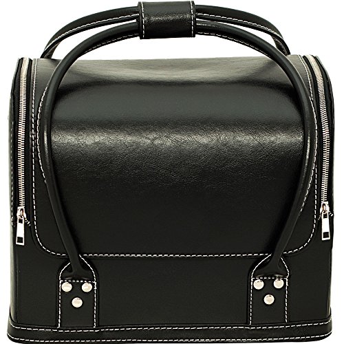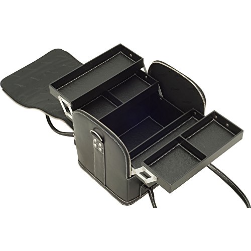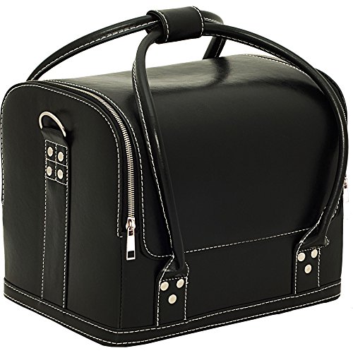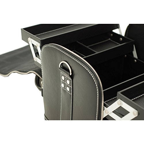 Sunrise Roll Top Pro Makeup Train Case with 4 Trays/Large Storage Compartment and Shoulder Strap, Black Leatherette
