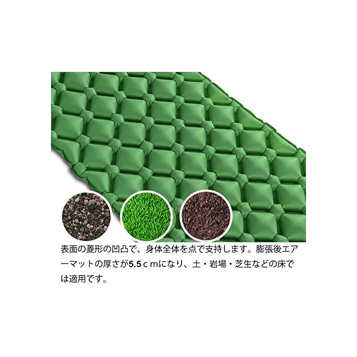 『분할 된 공기실』공기실의 만들기에 체중이 분산되고, 몸의 전체를 에어 매트에 태우면 제대로 된 느낌이 있고, 잘 때의 기분은 최고로 피로를 없애는 것 를 할 수 있습니다.캠프 만이 아니고, 레져,등산,하이킹,도보,오토바이 투어링(touring) 등의 아웃도어 활동에는 빠뜨리지 않는 것입니다.
