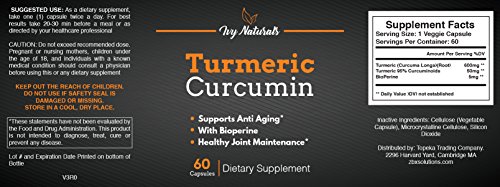 Turmeric Curcumin 60 CT by Ivy Naturals || Effective Turmeric Curcumin || 95% Curcuminoids Enhanced with BioPerine || Boost Antioxidants ||...