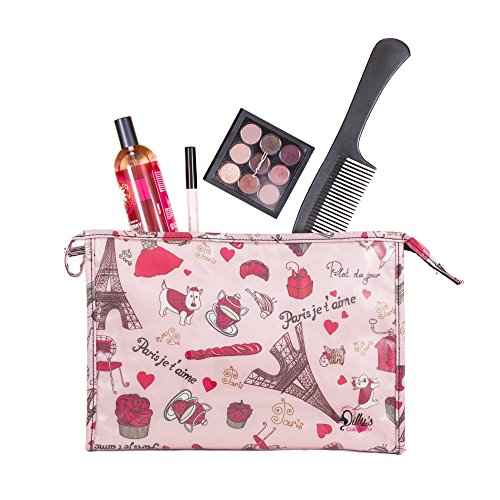 New Dilly’s Collections Cosmetic Bag - Large Capacity Travel Bag - Toiletry Bag - Makeup Bag - Travel Accessories - Paris Pink Cosmetic Bags