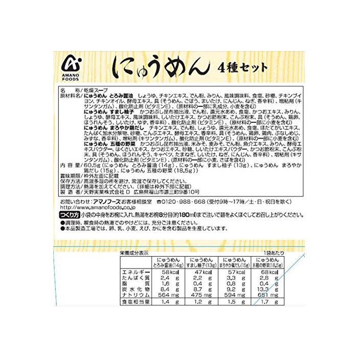 원본상품명: アマノフ?ズ にゅうめん 4種セット