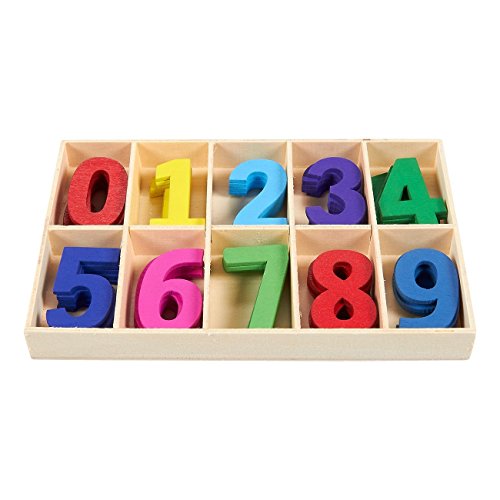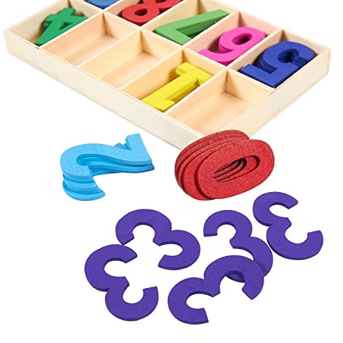 WOODEN NUMBER SET: Contains a total of 50 pieces, with 5 pieces of each number and each number in its own distinct color. Comes with a storage tray for easy access.