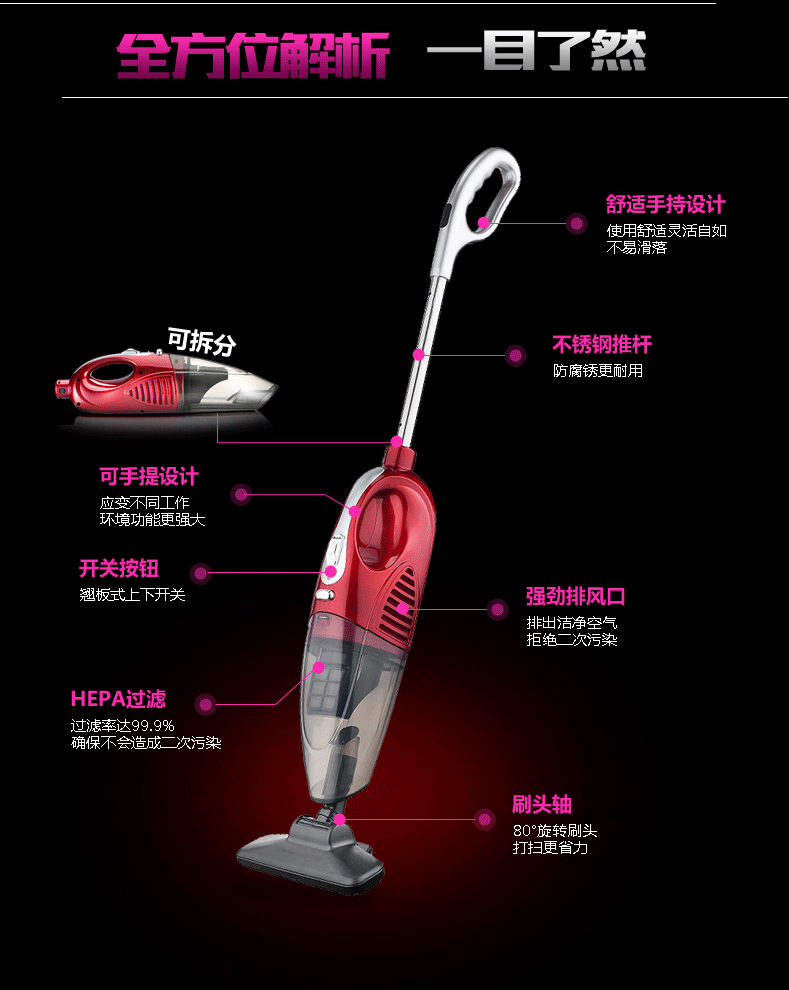 Ultra-quiet. Portable. Wireless charging vacuum cleaner for home use. Remove mites.