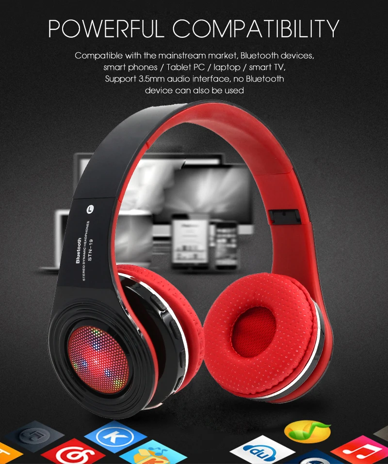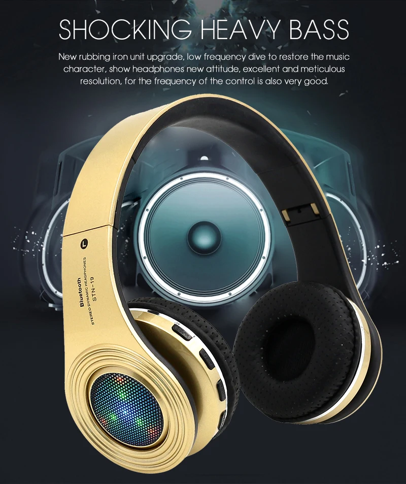 LED light Bluetooth headphones:Bluetooth gaming headset audifonos