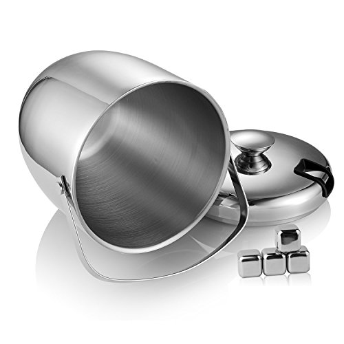 -. Title : Fortune Candy Stainless Steel Ice Bucket, 3 Liter/ 0.8 Gallon Double Wall Fingerprint Off with Tong and Ice Cube