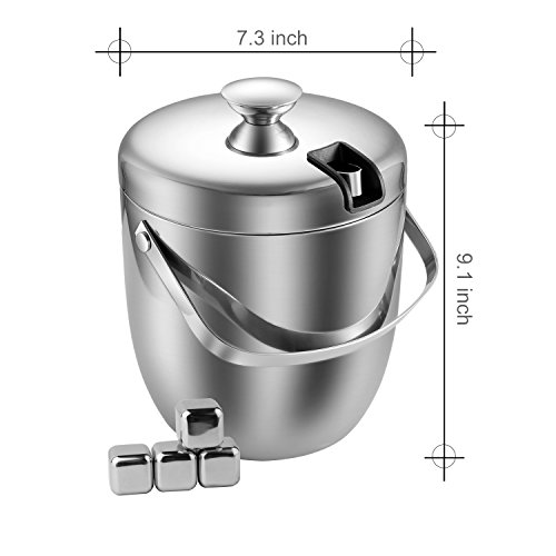 -. Feature : Packing:1 * Ice Bucket,1 * Tong, 4 * Ice Cube / Size: Ice Buckets 7.3*6.9*9.1 inches, Tong 6.5*0.6*0.6inches, tong grasp ice easily / Combining elegance, quality and lavish design to fit your everyday needs. / Use Variously: Keeps your ice cool and clean at social gatherings, ice cube make your drink more cooler and enjoy the cool life. / Good Service & Reliable Warranty: Guaranteed respond within 24 hours, all Fortune Candy's ice bucket offer 3 months replacement, 5-years Warranty.