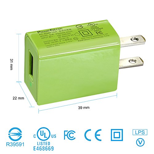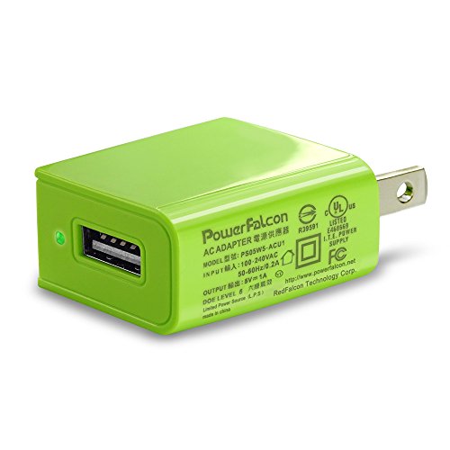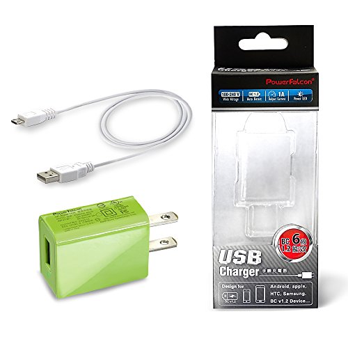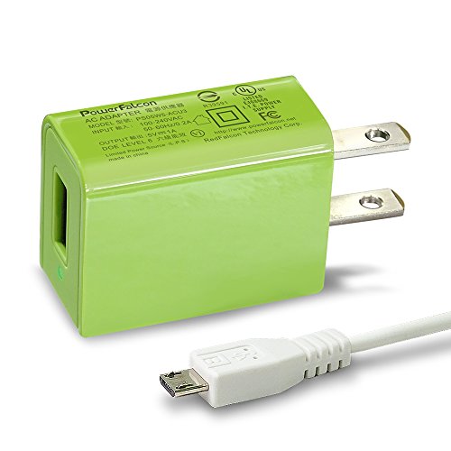 PowerFalcon 5W(5V/1A, UL Certified, DOE-6) Travel Wall Charger(Green) + 80cm Micro-USB to USB Cable (for android device)