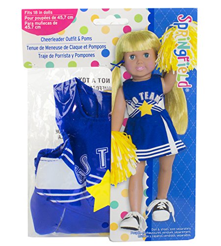 School Spirit - It's important to show your school and/or team spirit with the big game just around the corner! This Springfield Collection outfit features a sporty blue and white cheerleader outfit with fun yellow pom poms for use with any 18-inch doll.