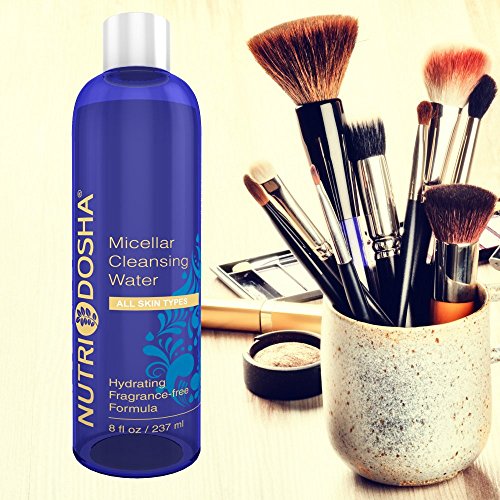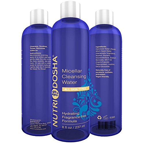Nutridosha Advanced Micellar Water No Rinse Facial Cleansing Water and Gentle Makeup Remover- 3 in 1 Hydrating Fragrance-free Formula. 8 OZ Value Size