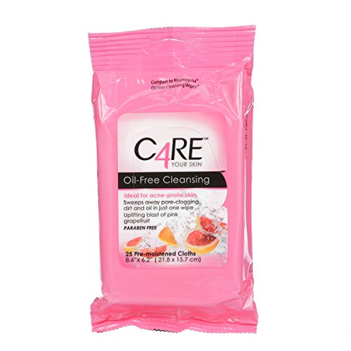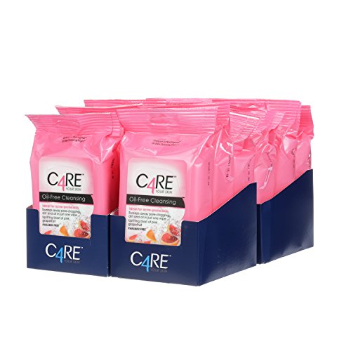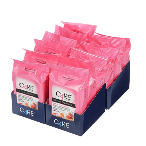 Oil-Free Facial Cleansing Cloths by C4RE, Paraben-Free, Pink Grapefruit Scent, 300 Count (12 Packs of 25 Wipes)