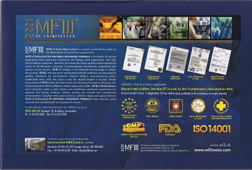 -. Binding : Health and Beauty -. Brand : MFIII -. EAN : 7602918299120 -. Feature : The most popular and perfected Anti-Aging Supplement on the planet / Researched, Developped & Manufactured in a federally GMP certified Swiss plant / The cellular biological activity is preserved using patented cold extraction technology / The softgels are specially coated to protect the contents from stomach acid / The only oral cell therapy product studied in a Swiss lab for effectiveness -. HazardousMaterialType : Unknown -. IsAdultProduct : 0 -. Label : MFIII -. LegalDisclaimer : Statements have not been evaluated by the FDA. This product does not diagnose or treat any condition. -. Manufacturer : MFIII -. Model : PE -. MPN : PE -. PackageQuantity : 30 -. PartNumber : PE -. ProductGroup : Health and Beauty -. ProductTypeName : HEALTH_PERSONAL_CARE -. Publisher : MFIII -. Studio : MFIII -. Title : MFIII original Swiss Placenta Softgels