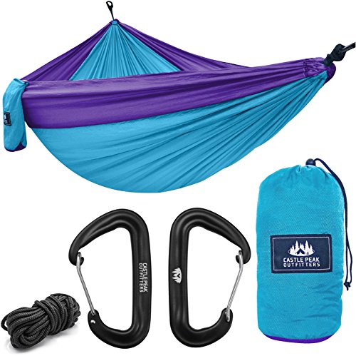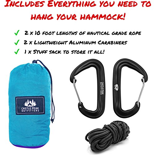 HIGH STRENGTH RIP STOP NYLON - When it comes to quality, Castle Peak Outfitters is a professional brand you can trust. We use only the highest quality materials on the market that guarantee the long life of our camping hammocks. For our double hammock swing we have chosen top-notch Diamond Ripstop parachute nylon that won’t get damaged even after many years of repetitive use!