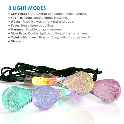 carelove Outdoor Solar String Lights, 8Mode 30 LED Water Drop 21ft Colorful Waterproof Decorative Christmas Fairy Globe Light for Indoor Party,Wedding Decoration,Patio,Garden,Holiday,Tree Decor