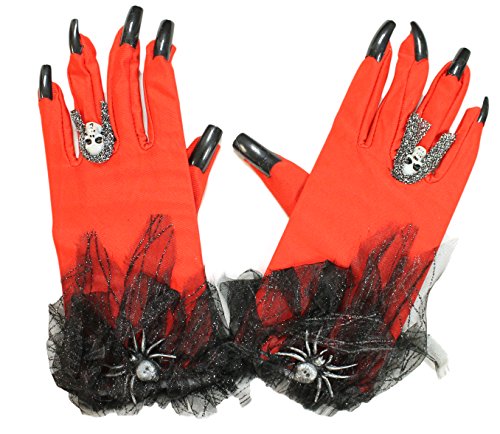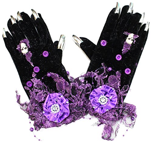 -. Brand : Jacobson Hat Company -. Department : womens -. Feature : The perfect accessory for your costume or next party! / Black witch gloves with tulle, feathers and beading / Gloves include silver square tipped nails / Perfect for Halloween / Great accessory for your witch costume! -. PackageQuantity : 1 -. ProductGroup : Apparel -. ProductTypeName : ADULT_COSTUME -. Size : one size -. Title : Halloween Costume Accessory Day Of The Dead Gloves