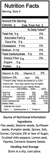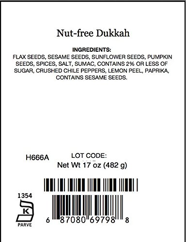 -. Feature : Our Nut-Free Dukkah is inspired by the classic Egyptian spice blend, but we have replaced the traditional nuts with flaxseeds, sunflower seeds and pumpkin seeds / A custom blend of warm, fragrant spices and spicy chile flakes gives the seasoning its signature flavor / Stir into cooked pastas, couscous, rice, beans or lentils / Stir into dips and spreads and serve with crudit_ or crackers / Non-GMO, KOF-K Kosher Parve