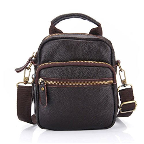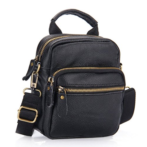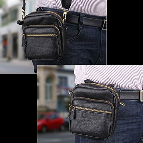 -. Feature : Polyester lining / Made Of genuine cowhide leather, classic design and durable material / Multi Pocket Design: One main zipper compartments, two front zipper compartments, and one inner zipper Pocket / It comes with a adjustable and detachable shoulder strap and belt loop on the back, you can also use as a waist pack/fanny pack/hip bag or as a small Sling messenger / cross body bag/ shoulder bags / Smart design but large capacity, perfect for any size cell phone, credit cards ,money ,keys ,passport or cigarettes ,lighter etc, a wise choice for travel/shopping
