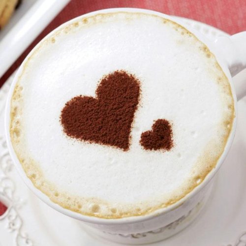 컵에 카푸치노를 만들어 넣음(담는 그릇·상자 등),플레이트를 1매 얹고, 코코아 파우더를 떨치면 간단하게 아트가 완성됩니다.