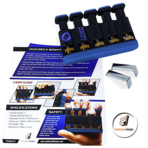 Epitomie Fitness Finger Master: Deluxe Hand Finger Exerciser & Strengthener for Arthritis, Carpal Tunnel, Guitar Playing, Rock Climbing, Sports & Trigger Finger Training - All Five Fingers Adjustable