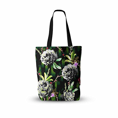 KESS InHouse Victoria Krupp "Twilight Peonies" Black Green Digital Everything Tote Bag, 16" x 16", Multicolor