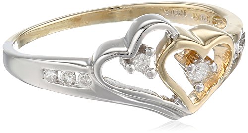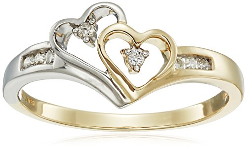 -. Title : 14k Two-Tone Diamond Heart Ring (1/10 cttw, I-J Color, I2-I3 Clarity)