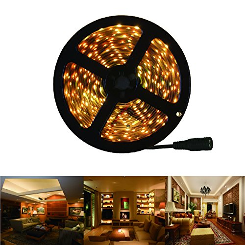 RoLightic Flexible LED Strip - Warm White 3000K SMD 3528 with 300LEDs,16.4 Ft Roll,12V DC,Indoor IP44 Non-Waterproof,LED Tape Light (Warm White)