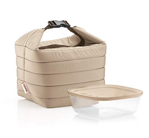 Guzzini Insulated Lunch Bag and Container Set, 8-1/2-Inches by 8-1/2-Inches by 7-Inches, Taupe