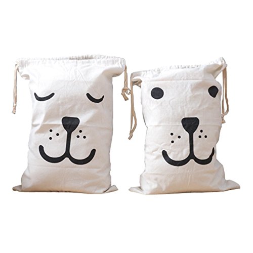 Yougagirl Canvas Laundry Bag 19x27INCH 2 Pack Bear Canvas Drawstring Bag for Dirty Laundry Organizers Storage Sorting Bag Large Laundry Tote (Smile and Sleeping Bear)