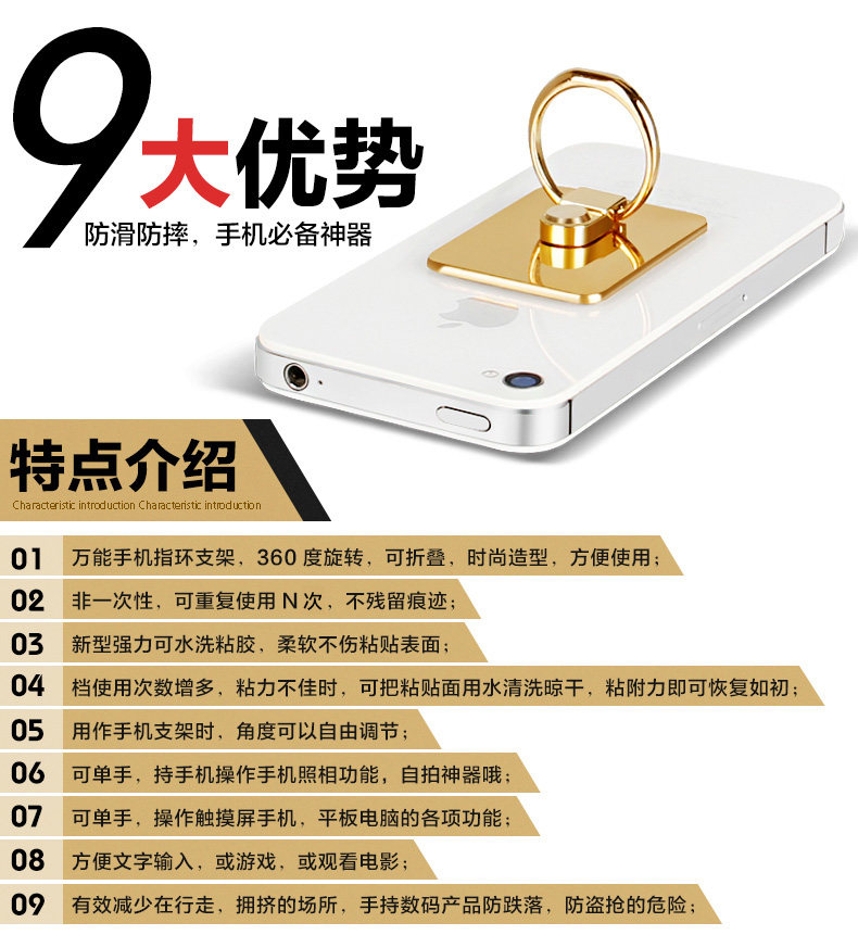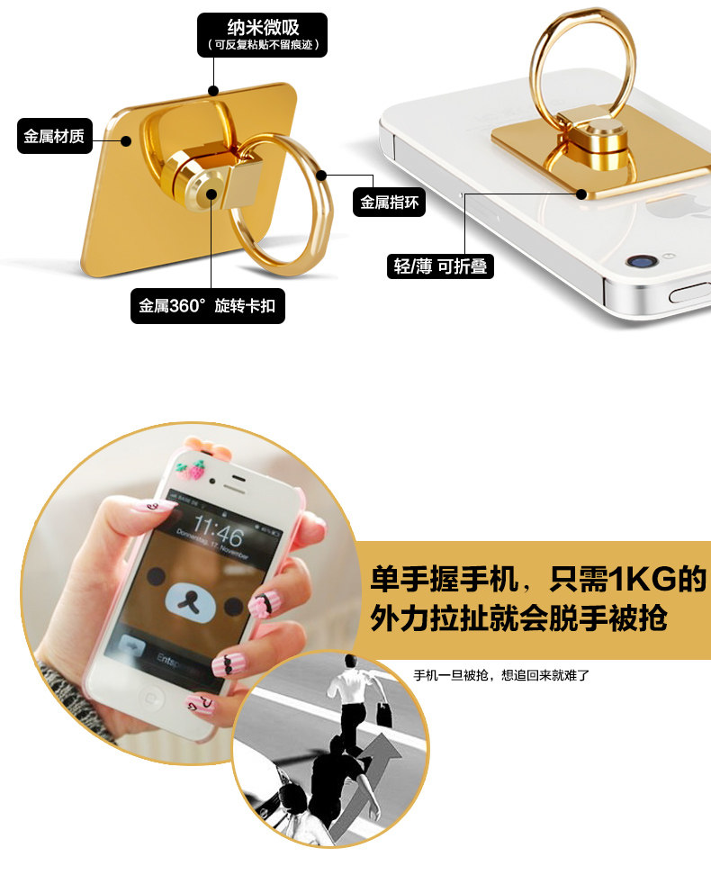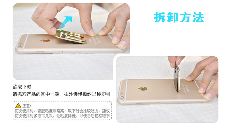重要提示:在手机上取下指环时,是扣住一个角翘下来的,请勿拉着指环硬拽哦!